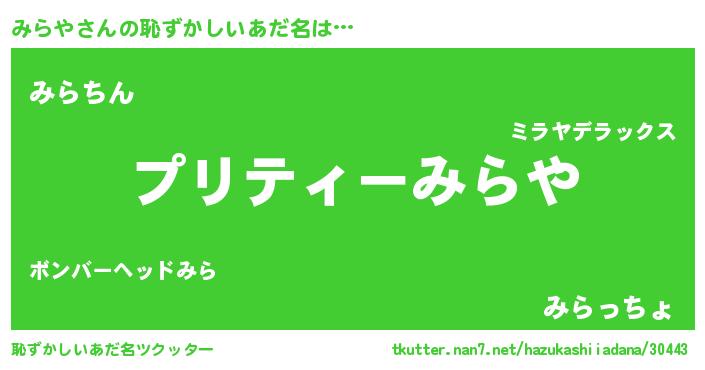 | 欧米人風あだ名 | 『ダレノガレみらや』『トリンドルみらや』 |