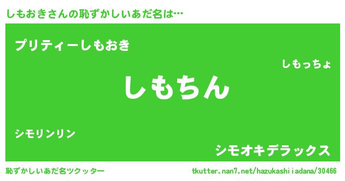 | ヘコむあだ名 | 『しもおき(苦笑)』『しももー』 |