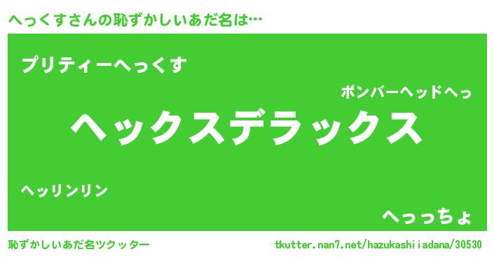 | 男性向けラノベタイトル風あだ名 | 『緋弾のヘックス』『へっくすの憂鬱』 |