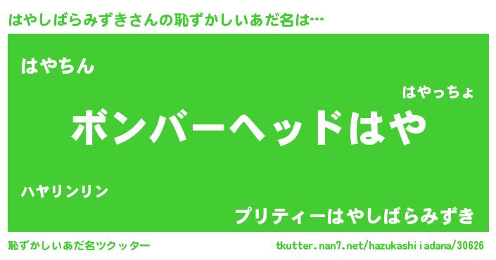 | 意味不明あだ名 | 『眠気覚ましガムはやしばらみずき味』 |