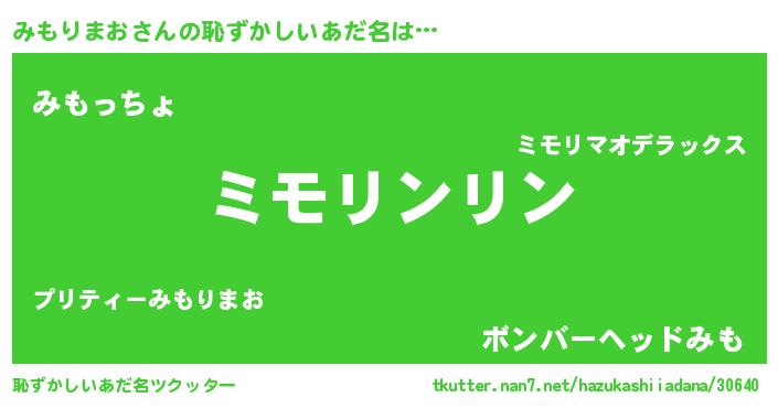 | 意味不明あだ名 | 『とにかく怪しいみもりまお』 |