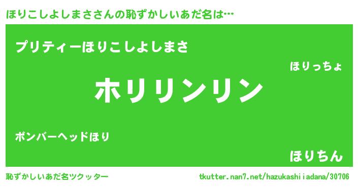 | ヘコむあだ名 | 『ほり太郎』『ほりっふぃ~』『豆乳』 |