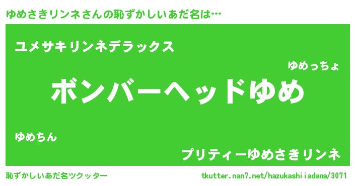 | ヘコむあだ名 | 『ゆめにー』『レバニラ』『ゆめを』 |