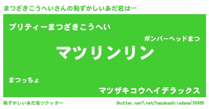 | 男性向けラノベタイトル風あだ名 | 『まつざきこうへいの嫁は女の子じゃないと思った?』 |