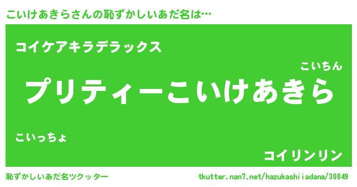 | 男性向けラノベタイトル風あだ名 | 『転生したらこいけあきらだった件』 |