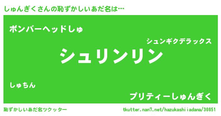 | ヒーロー風カッコイイあだ名 | 『魔戒騎士シュ』『天空の使者しゅんぎく』 |