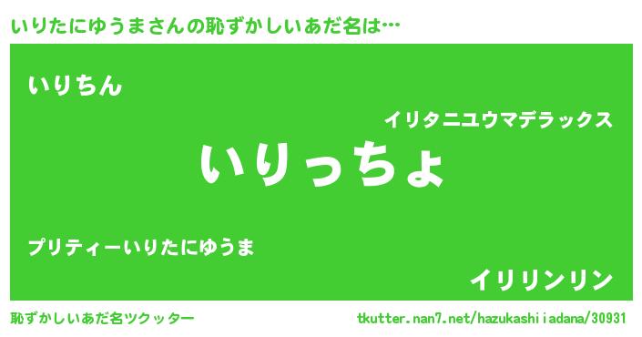 | 意味不明あだ名 | 『いりたにゆうまフォーエバー』 |