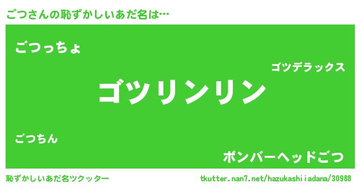 | ヘコむあだ名 | 『ごつぷりん』『豆乳』『ごつ(笑)』 |