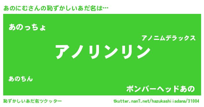 | ヒーロー風カッコイイあだ名 | 『幻影騎士アノ』『ウルトラあのにむマン』 |