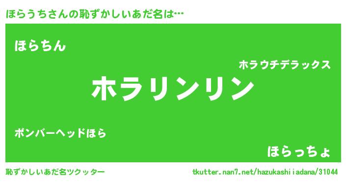 | 意味不明あだ名 | 『住所不定無職ほらうち(1歳)』 |