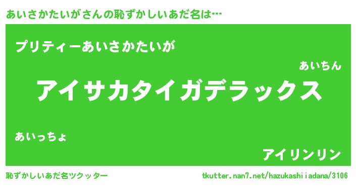 | 意味不明あだ名 | 『自称あいさかたいが』 |