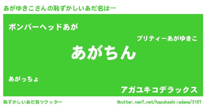 | 意味不明あだ名 | 『永久保存あがゆきこ』『自称あがゆきこ』 |