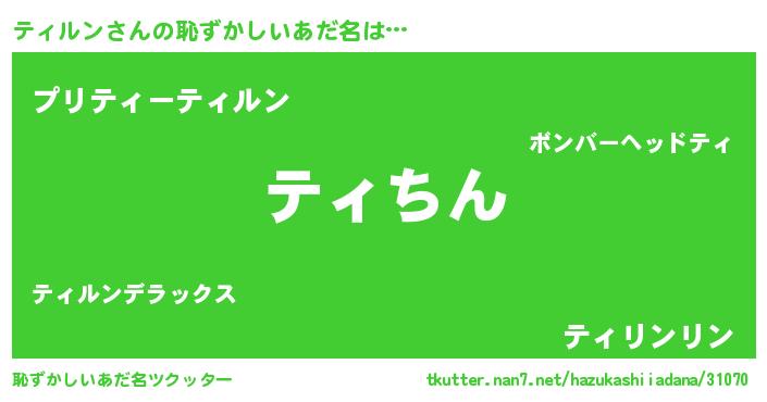 | ヘコむあだ名 | 『ティルン(苦笑)』『ティふぇ~』 |