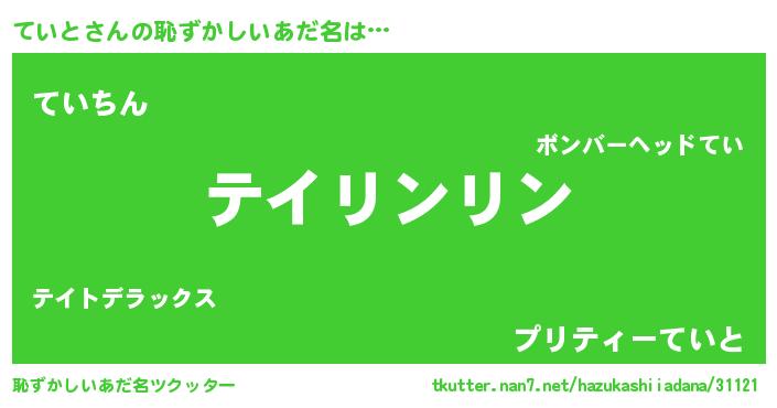 | ヘコむあだ名 | 『てい太郎』『ていと(震え声)』 |