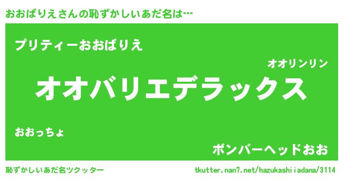 | 意味不明あだ名 | 『自称おおばりえ』『ペロリンおおばりえ』 |