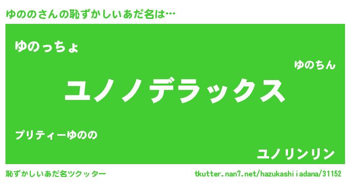 | 意味不明あだ名 | 『自称ゆのの』『ゆののフォーエバー』 |