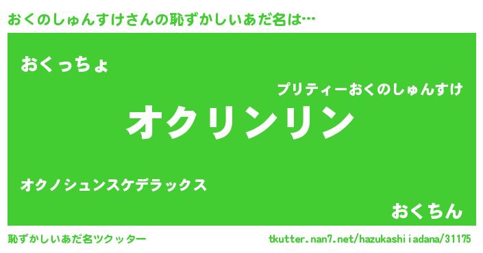 | 男性向けラノベタイトル風あだ名 | 『おくのしゅんすけの嫁は女の子じゃないと思った?』 |