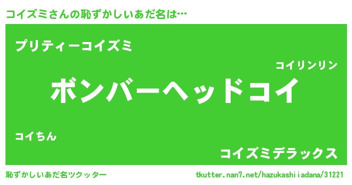 | ヒーロー風カッコイイあだ名 | 『天空の使者コイズミ』『天弓騎士コイ』 |