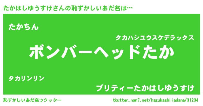 | ヘコむあだ名 | 『たかはしゆうすけ(笑)』『たかもー』 |