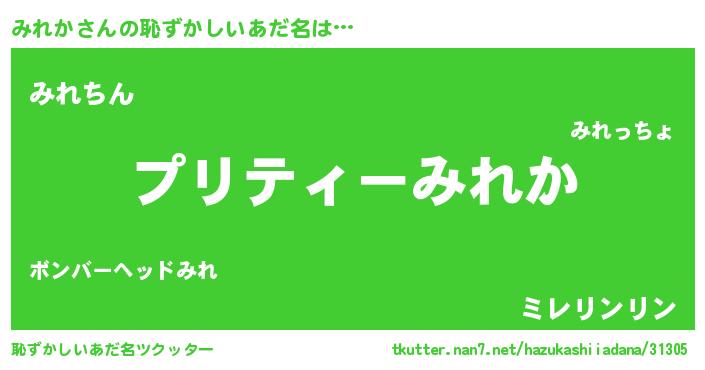 | 意味不明あだ名 | 『住所不定無職みれか(84歳)』 |