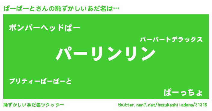 | 意味不明あだ名 | 『とにかく怪しいぱーばーと』 |