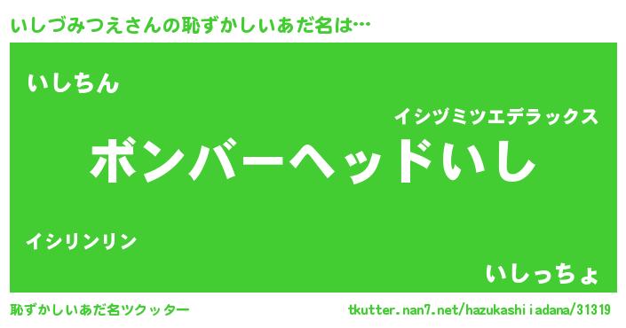 | ヘコむあだ名 | 『いしづみつえ(小並感)』『豆乳』 |