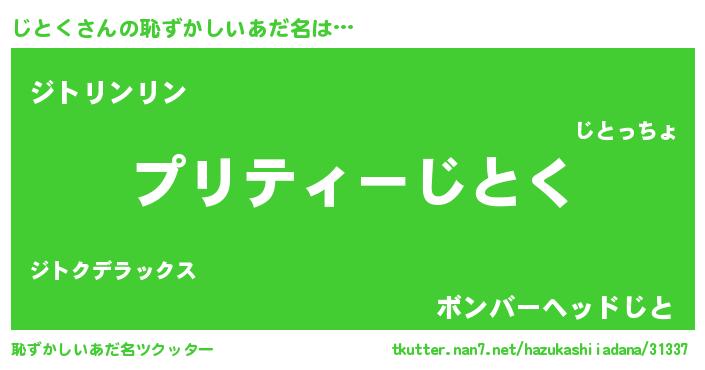 | 男性向けラノベタイトル風あだ名 | 『ジトクスレイヤー』『じとくの憂鬱』 |