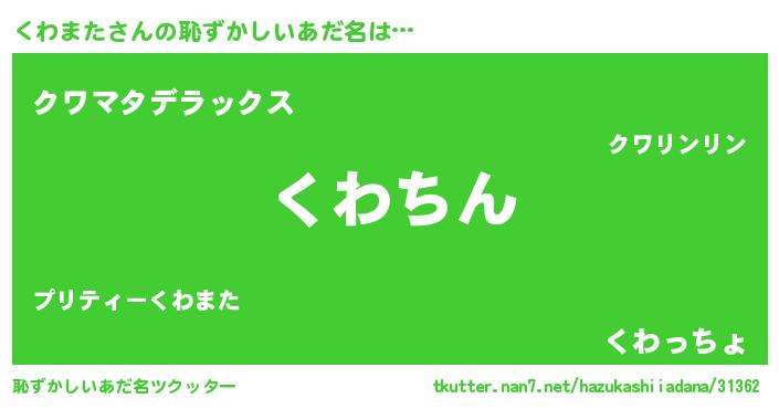 | 意味不明あだ名 | 『永久保存くわまた』『自称くわまた』 |