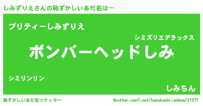 | ヘコむあだ名 | 『しみにゅー』『しみずりえ(小並感)』 |