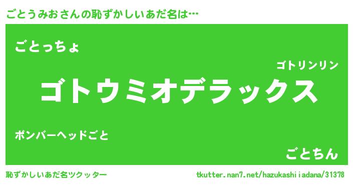 | 意味不明あだ名 | 『自称ごとうみお』『永久保存ごとうみお』 |