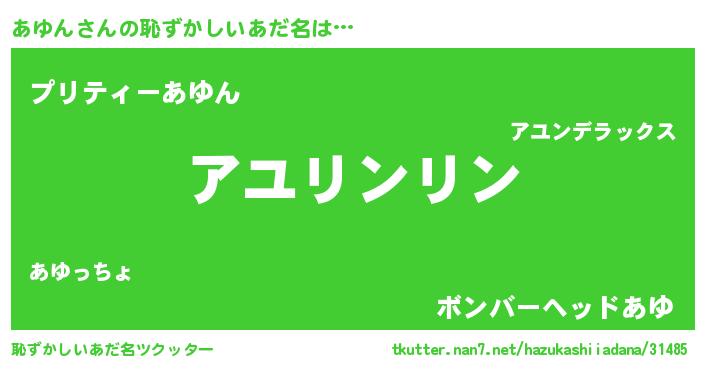 | 女子向けラノベタイトル風あだ名 | 『あゆんは平凡を望む』『闇のあゆん』 |