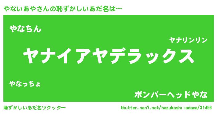 | ヘコむあだ名 | 『やないあや(苦笑)』『やなっ子』 |
