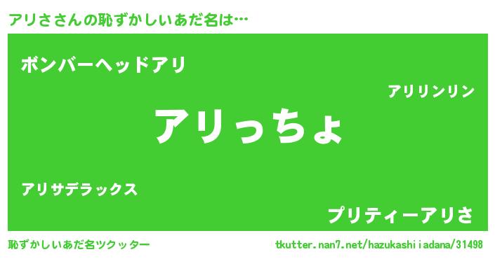 | ヒーロー風カッコイイあだ名 | 『ウルトラアリさマン』『スーパーアリサ』 |
