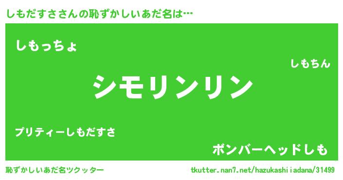 | ヘコむあだ名 | 『しもっ子』『酢こんぶ』『しもにー』 |
