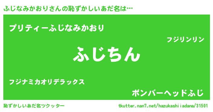 | 男性向けラノベタイトル風あだ名 | 『ふじなみかおり~年齢イコール彼女いない歴の魔法使い~』 |