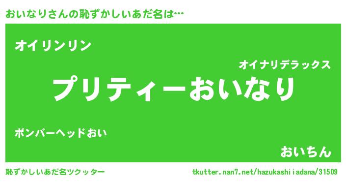 | ヒーロー風カッコイイあだ名 | 『スーパーオイナリ』『仮面オイダー』 |