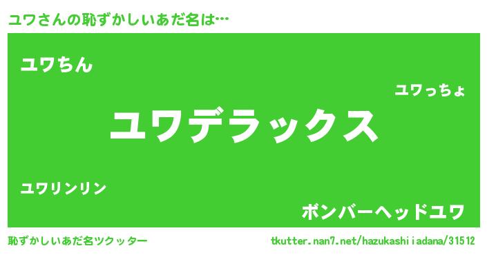 | ヒーロー風カッコイイあだ名 | 『仮面ユワダー』『最強戦士ユワ』 |
