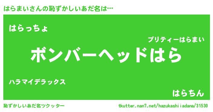 ヒーロー風カッコイイあだ名 | 『慈愛の使者はらまい』『ネオハラマイ』 |
