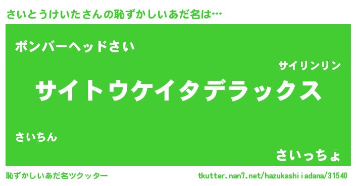 | 欧米人風あだ名 | 『ケンブリッジさいとうけいた』 |