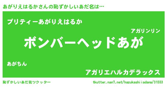 | 胡散臭い通販商品みたいなあだ名 | 『世界中を虜にした世界で10本だけ現存している希少なブランデー…その名も「あがりえはるか」』 |