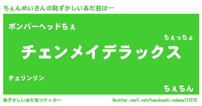 | 男性向けラノベタイトル風あだ名 | 『Re:ちぇんめいから始める異世界生活』 |