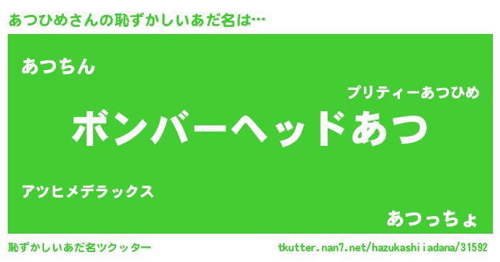 | 欧米人風あだ名 | 『ダニエルあつひめ』 |