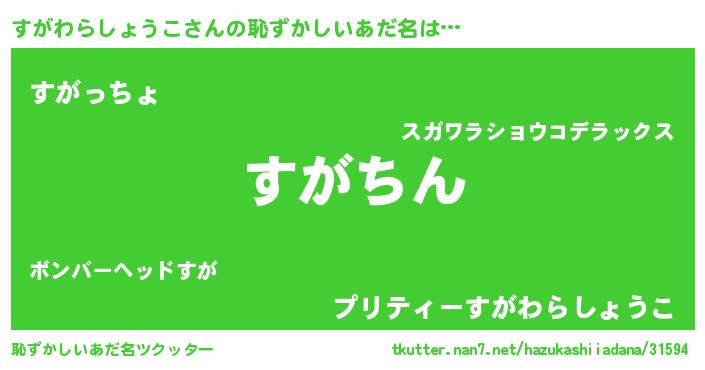 ヘコむあだ名 | 『すがわらしょうこ(苦笑)』『酢こんぶ』 |
