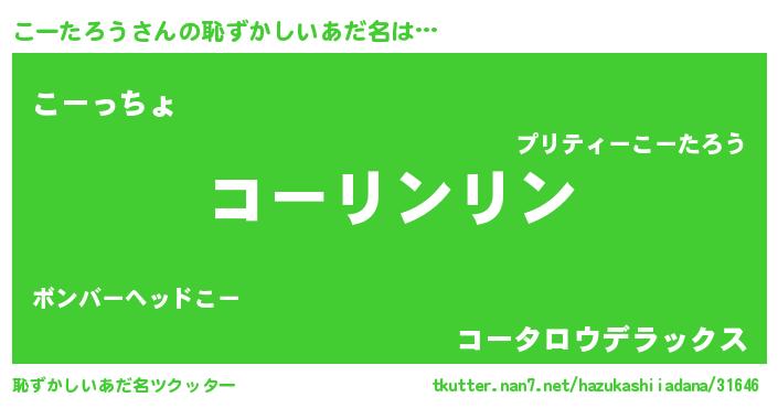 | 意味不明あだ名 | 『とにかく怪しいこーたろう』 |