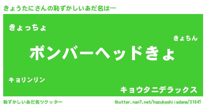 | ヒーロー風カッコイイあだ名 | 『正義の使者きょうたに』『仮面キョダー』 |
