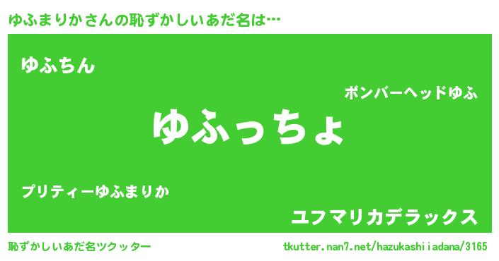 | 男性向けラノベタイトル風あだ名 | 『ゆふまりか~年齢イコール彼女いない歴の魔法使い~』 |