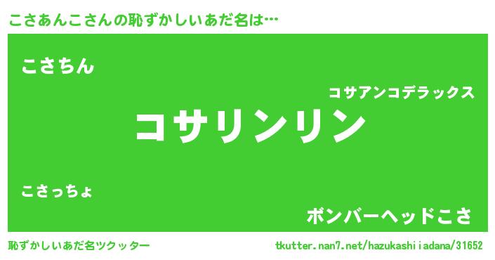 | 意味不明あだ名 | 『とにかく怪しいこさあんこ』 |