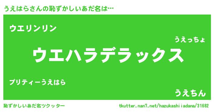 | 意味不明あだ名 | 『自称うえはら』『永久保存うえはら』 |