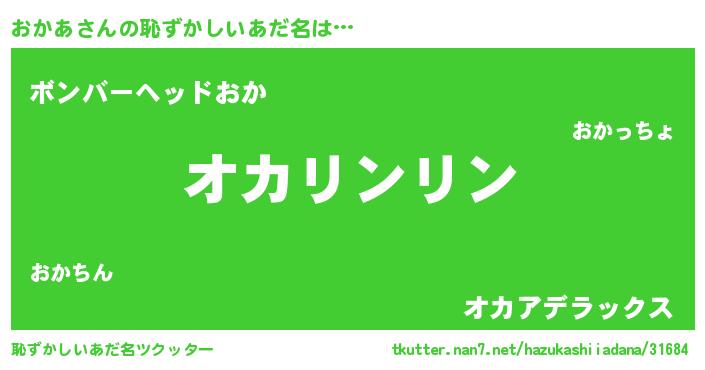 | 男性向けラノベタイトル風あだ名 | 『おかあ~年齢イコール彼女いない歴の魔法使い~』 |