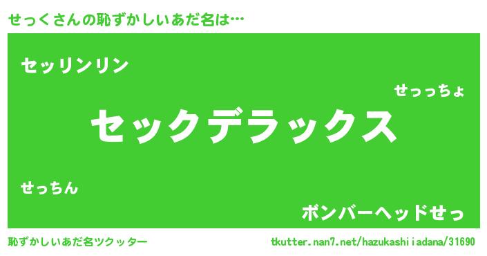 | ヒーロー風カッコイイあだ名 | 『仮面セッダー』『ウルトラ戦士セック』 |